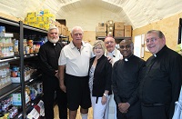 Beginning in the Rectory laundry room a half-flight of stairs down from the reception area, full grocery bags were lugged upstairs to be handed out to those who come twice each month. The ONLY question asked: do you need food that you don't have to cook? It is a polite way to ask about whether persons might be homeless or have such poor living conditions that they are unable to cook. In the bags that do not require cooking, the cans do not require a canopenner or other provisions are made. Other items such as toilettries, blankets, and coats are also provided as needs are determined. It is heartwrenching to see some people leave the Rectory and immediately sit on the benches along side the Church to eat hungrily some of the provisions. Those able to cook are provided equally appropriate items from our pantry. In 2018, having overflowed the laundry room and two other places, as well as worn thin from hauling parcels in and out, up and down, a food pantry and dock were constructed at the rear of the Church with direct and level access through the Rectory to the reception area.